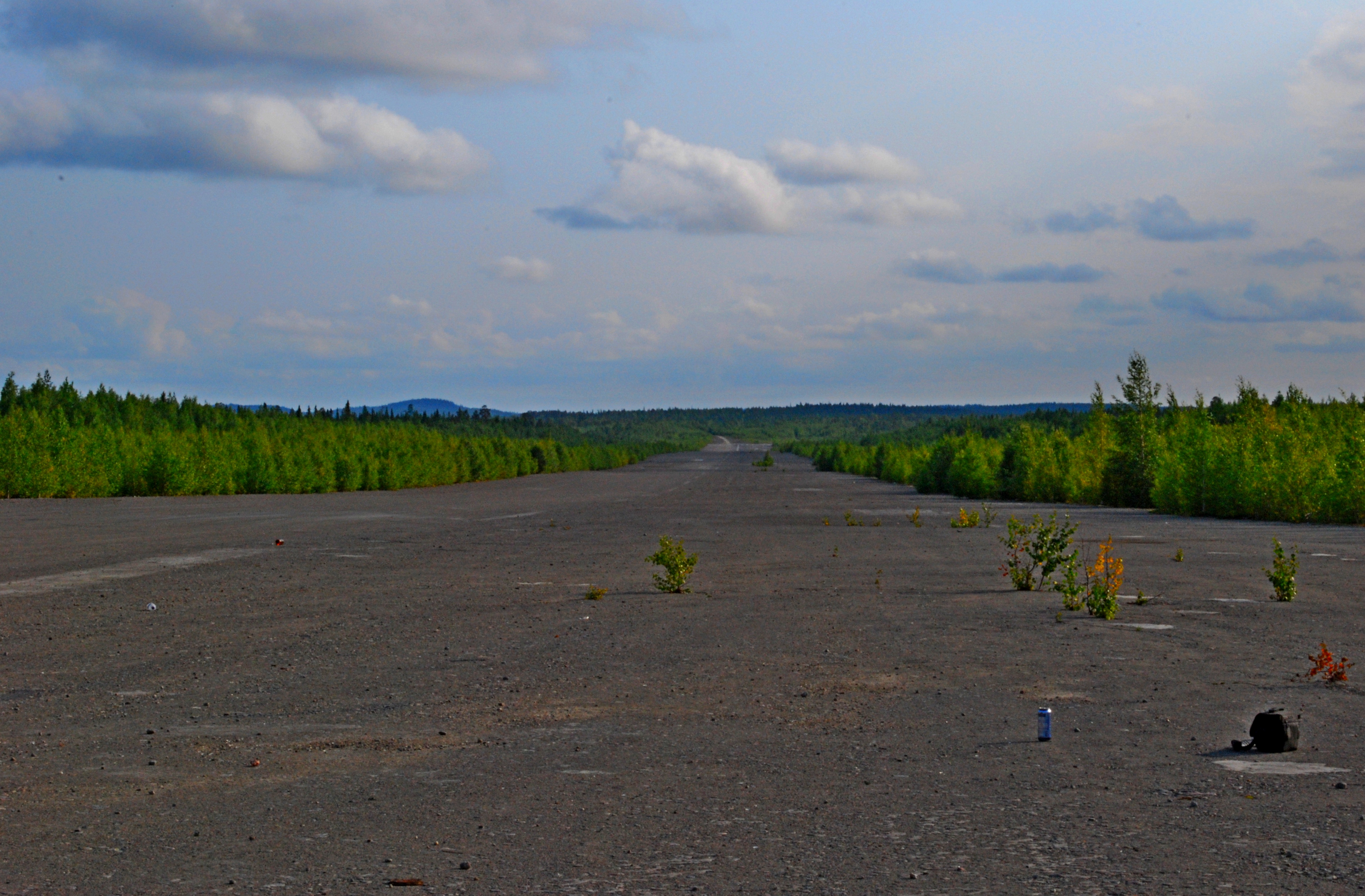 После нескольких километров каменистой и неровной дороги увидеть широченную и ровную асфальтовую рулежку и не менее ровную взлетку – это весьма шокирующе. Аэродром, видимо, всегда использовался как резервный – никаких построек и инфраструктуры – только полосы.