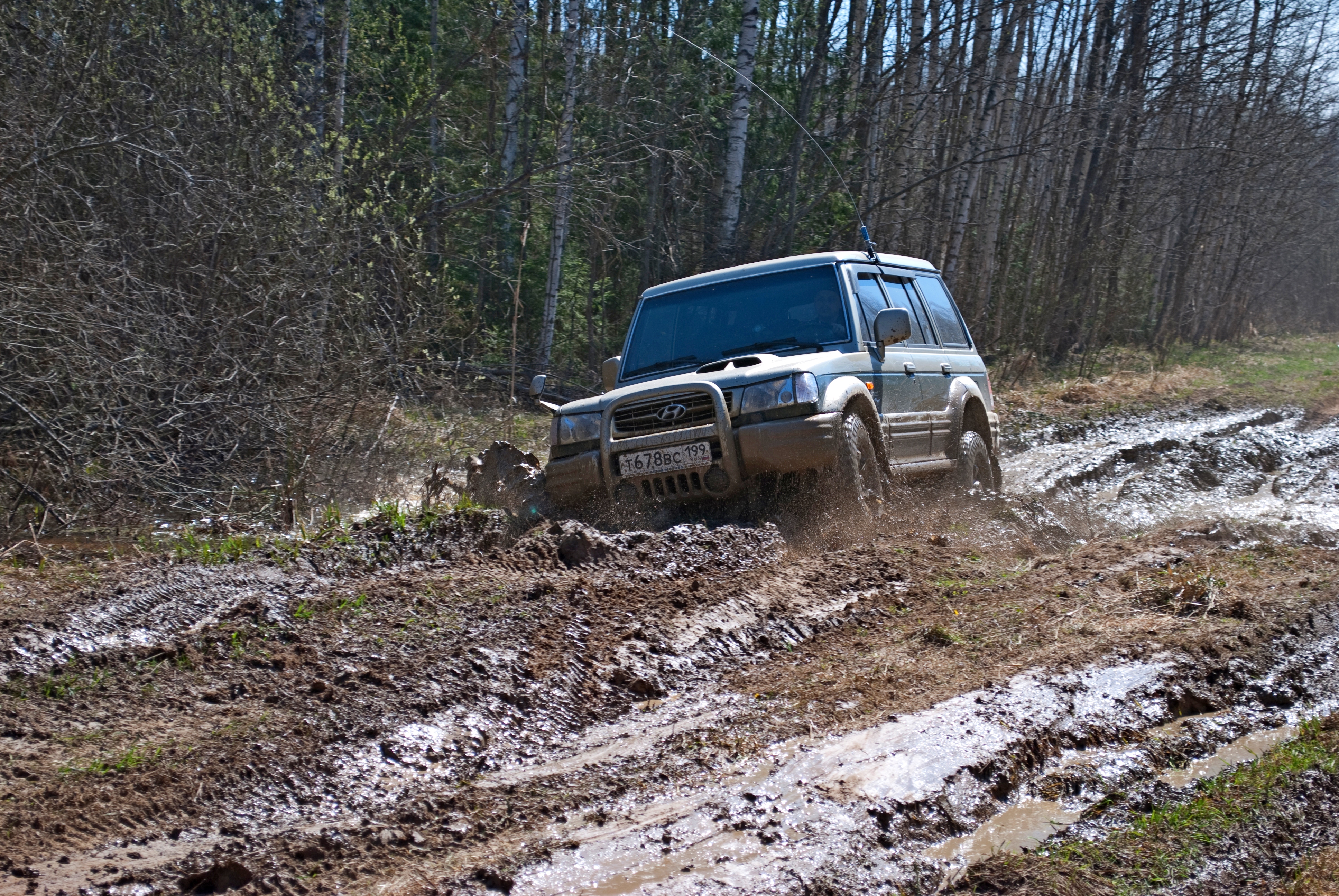 Утро 3го. Пикантность ситуации – моей супруге в 14 часов улетать в Турцию. Билеты электронные, но документы, деньги и багаж дома. А мы – в лесу. Козликом дернули Галлопер из той каки, где он ночевал, и тут я понял, что тяги на низах нету ваще никакой, собственно, потому и застрял накануне. Значит теперь преграды он преодолевать может только ходом. Причем, хорошим таким ходом, с разбегу, даже похлеще Аутлендеровского. Быстро грузим вещи и в обратный путь. Козлик нас сопровождает на выход. Пару раз ему пришлось нас тащить – когда с разбегу мы чуть-чуть не вытягивали до твердого, соответственно, тронуться уже не могли. Но вот мы на твердой грунтовке и теперь у нас есть три с половиной часа и ~250 км пути. Я раньше по этим грунтовкам 40 км/ч ездил и удивлялся, чей-та трясет… 🙂