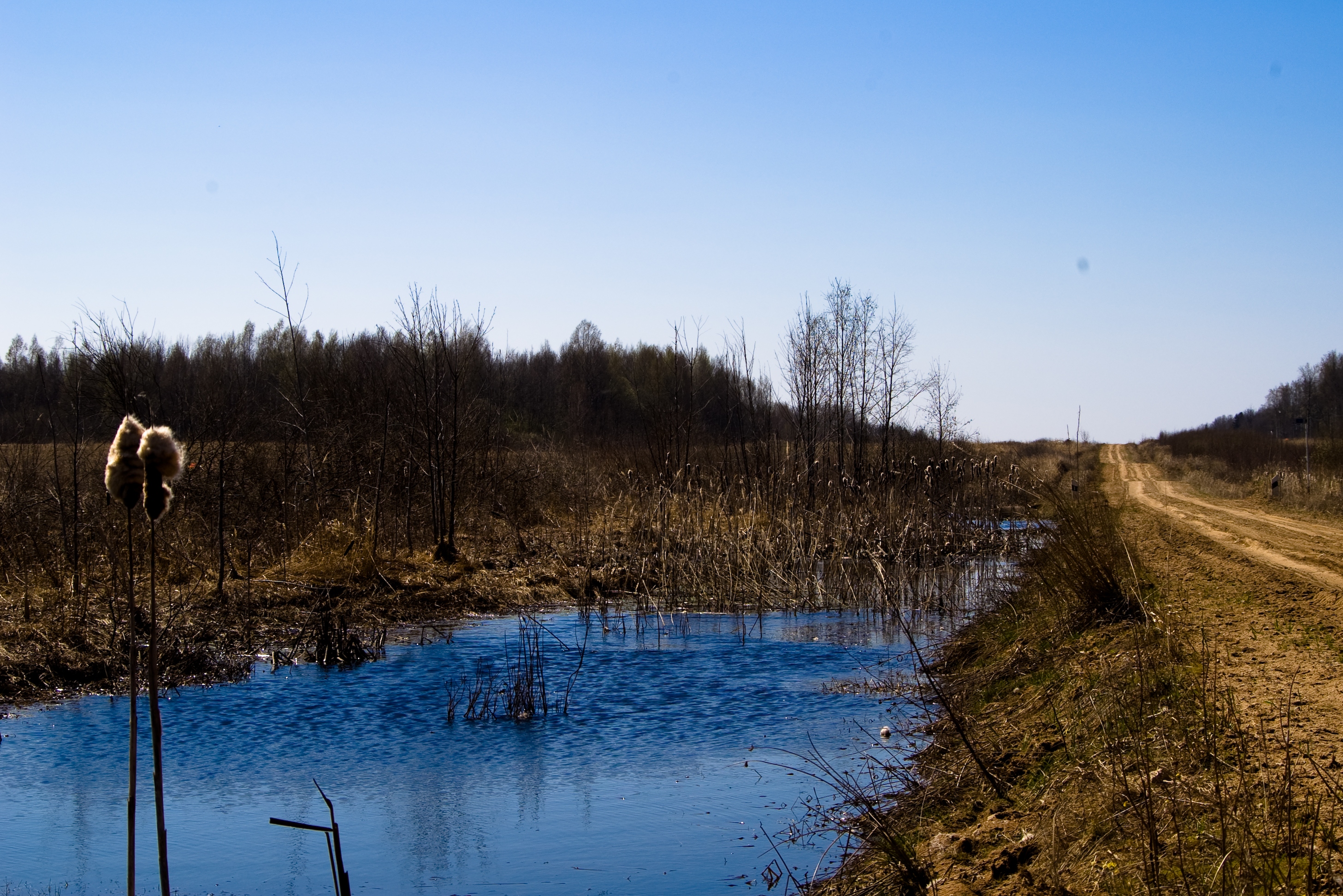 Ну вот, ребята прошли 12 км и я могу выдвигаться им на встречу. Выдвигаюсь. За 10 минут пролетаю вчерашние мучительные грязи, дальше грунтовка, трасса, снова грунтовка и поворот налево. Дорога уходит в глушь. И вот тут мне стало стремно. Судя по всему, данной дорогой очень давно никто не пользуется. Вверх-вниз, вверх-вниз. Лужи, плавно переходящие в болота. Осыпающиеся края дороги, иногда обозначенные вешками (ага, люди-то тут все-таки бывают!). При этом дорога прямая, без изгибов. Т.е. когда-то это была серьезная дорога как минимум районного значения. Озик отсчитывает километры до точки встречи. Километров за 5 до точки встречи начал слышать и ребят, и что удивительно, базу. Плохо, на грани слышимости, но докричаться можно.