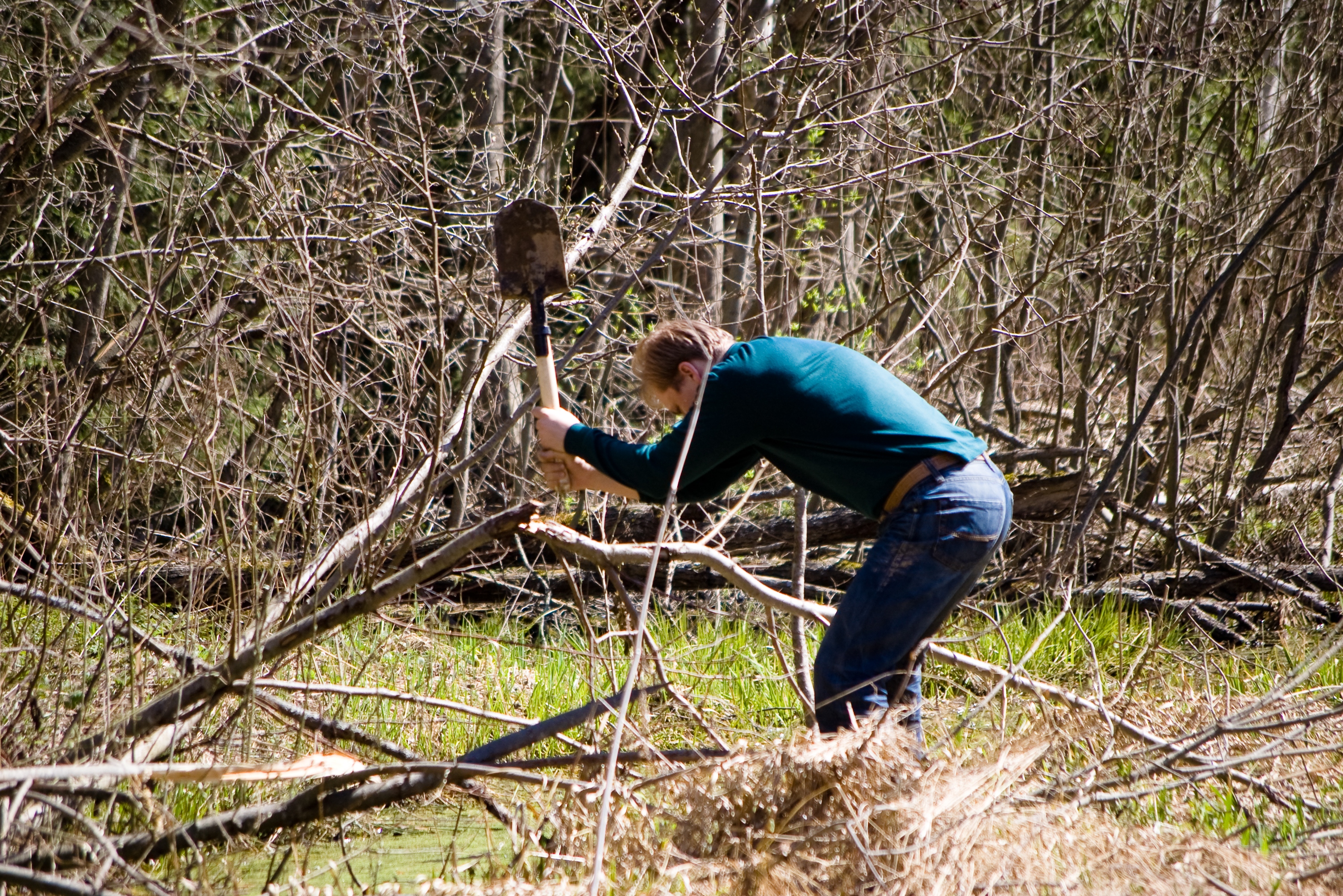 Продолжаю ломиться. Тут волшебная стрелочка (V) делает ква и застывает на отметке 12. Вечер перестает быть томным. До точки встречи еще 5 км, а обратно еще 120, из них 20 – по такому же дерьму. И – скоро сумерки. Выключаю всех потребителей кроме рации и увеличиваю скорость. Оставшиеся 3 км до точки я просто ломился по подлеску. Вот тут явно уже никто не ездил. А местность все сильнее заболочена. А стрелочка стоит на 12V и всем своим видом являет пример безысходности. Точка встречи. Ребят еще нет. Связываюсь с ними по рации – им еще километр. Оки, пока есть время развернуть машину в обратный путь и посмотреть под капот.