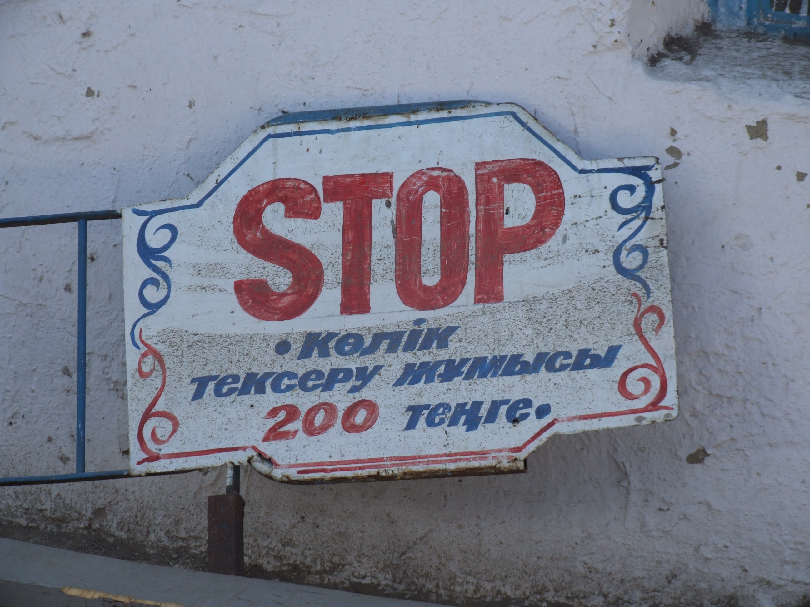 Вообще, такое ощущение, что казахские гаишники постоянно искали поводов, чтобы срубить бабла. Но – не находили. Штрафы за нарушение ПДД крупные, минимальный – 6000 тенге (~1300р). Мы чуть-чуть превысили скоростной режим под Жосалы (61 км/ч при знаке (50). С нас хотели 12 тысяч тенге, по 6 с каждой машины. Мишка (наш менеджер по связям с продажностью и гаишностью :D) поторговался и оставил им 2 тысячи (~400р).