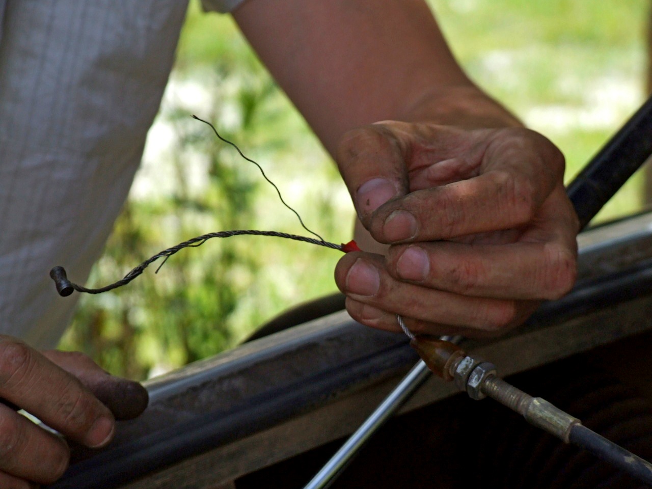 У серого почти порвался тросик газа. Отремонтировали, вплели новые нити из подручных материалов…