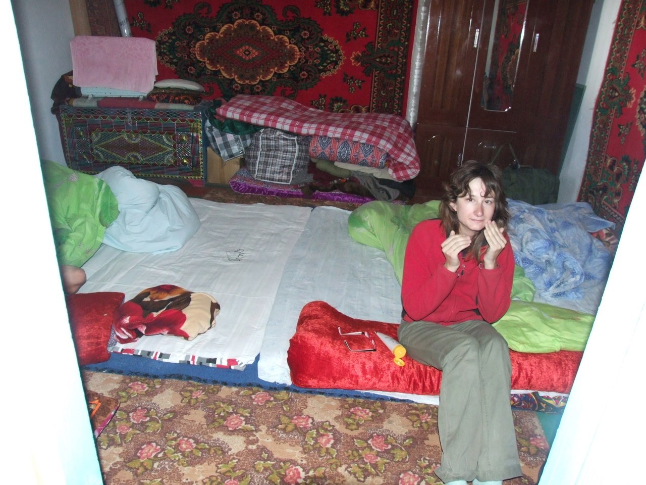 Спальня в кыргызском стиле – лежаки на полу (нет, девушка в комплекте не шла).