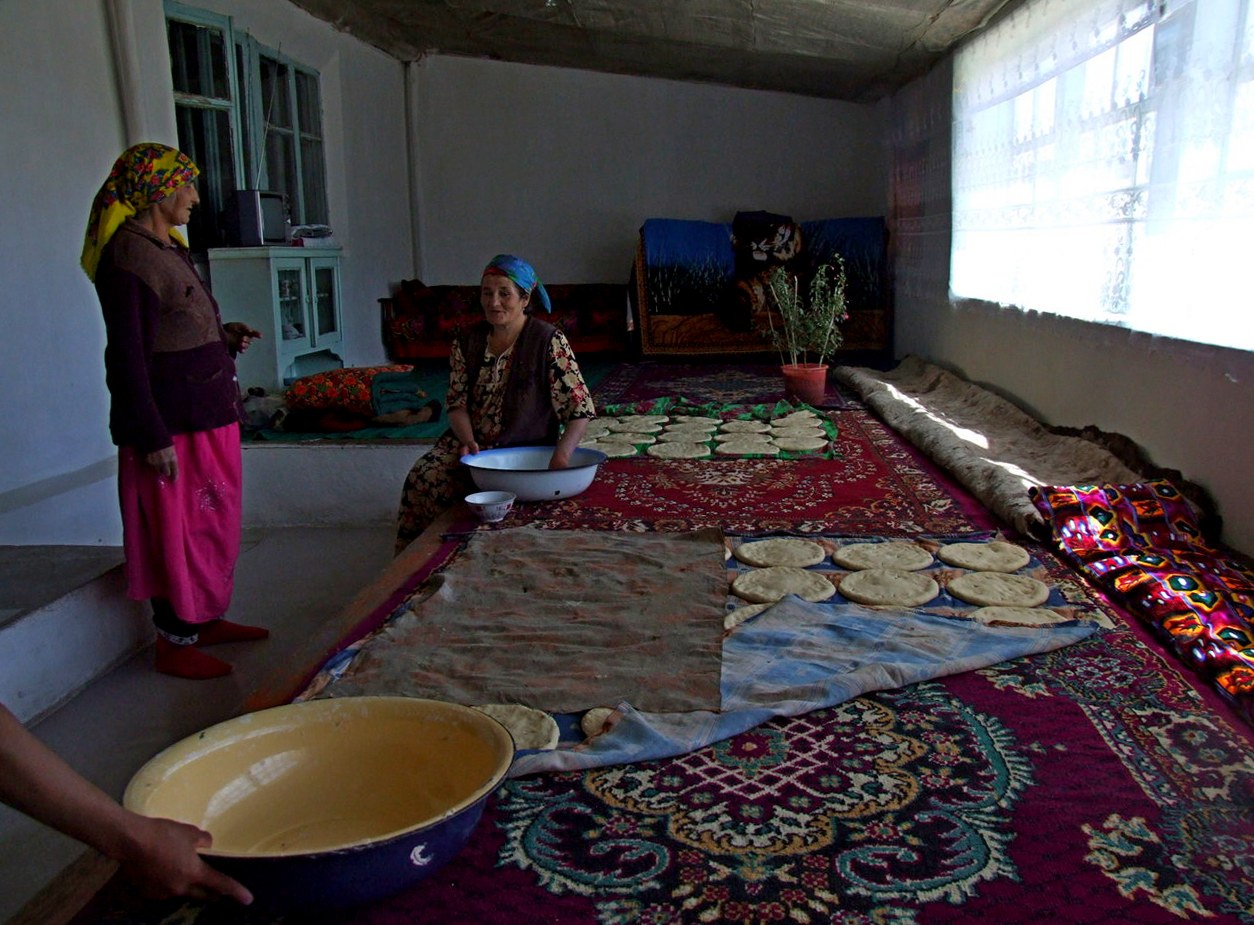 Утром был очередной поиск сварщика для Сергого – надо было починить кронштейн глушителя. Пока ребята возились со сварным, мы зашли в гости к местному жителю на чай. И посмотрели, как пекут лепешки в тандыре.