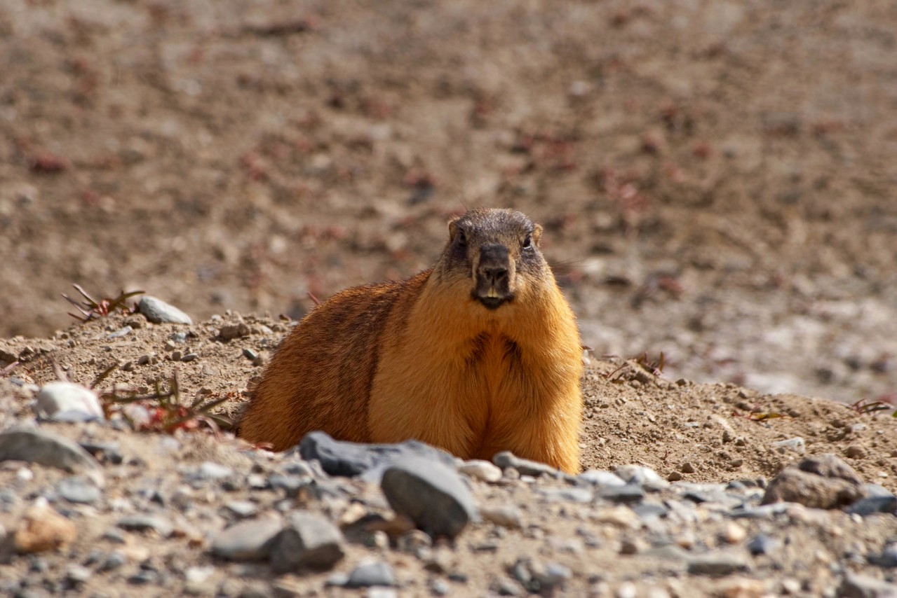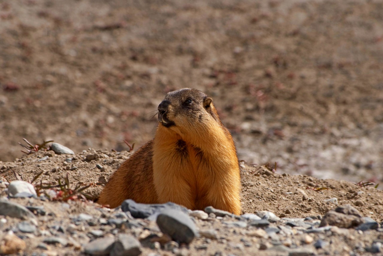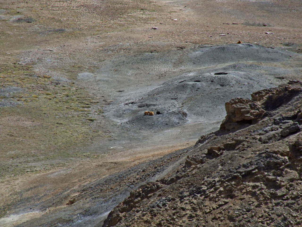 Еще один местный житель, сурок. Очень упитанный и осторожный. Живет в норах. Впадает в спячку зимой. Норы такие, что туда можно засунуть ногу по самую попу. Сначала недоумевали – кому могут принадлежать такие здоровые норы, но когда увидели живого сурка – все вопросы отпали. Чтобы беречь такого размера задницу – надо иметь весьма широкую нору, да… А то получится как в мультике про Вини-Пуха.