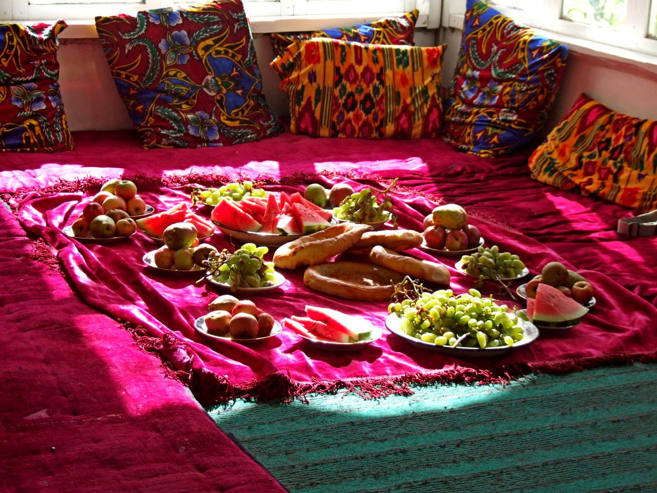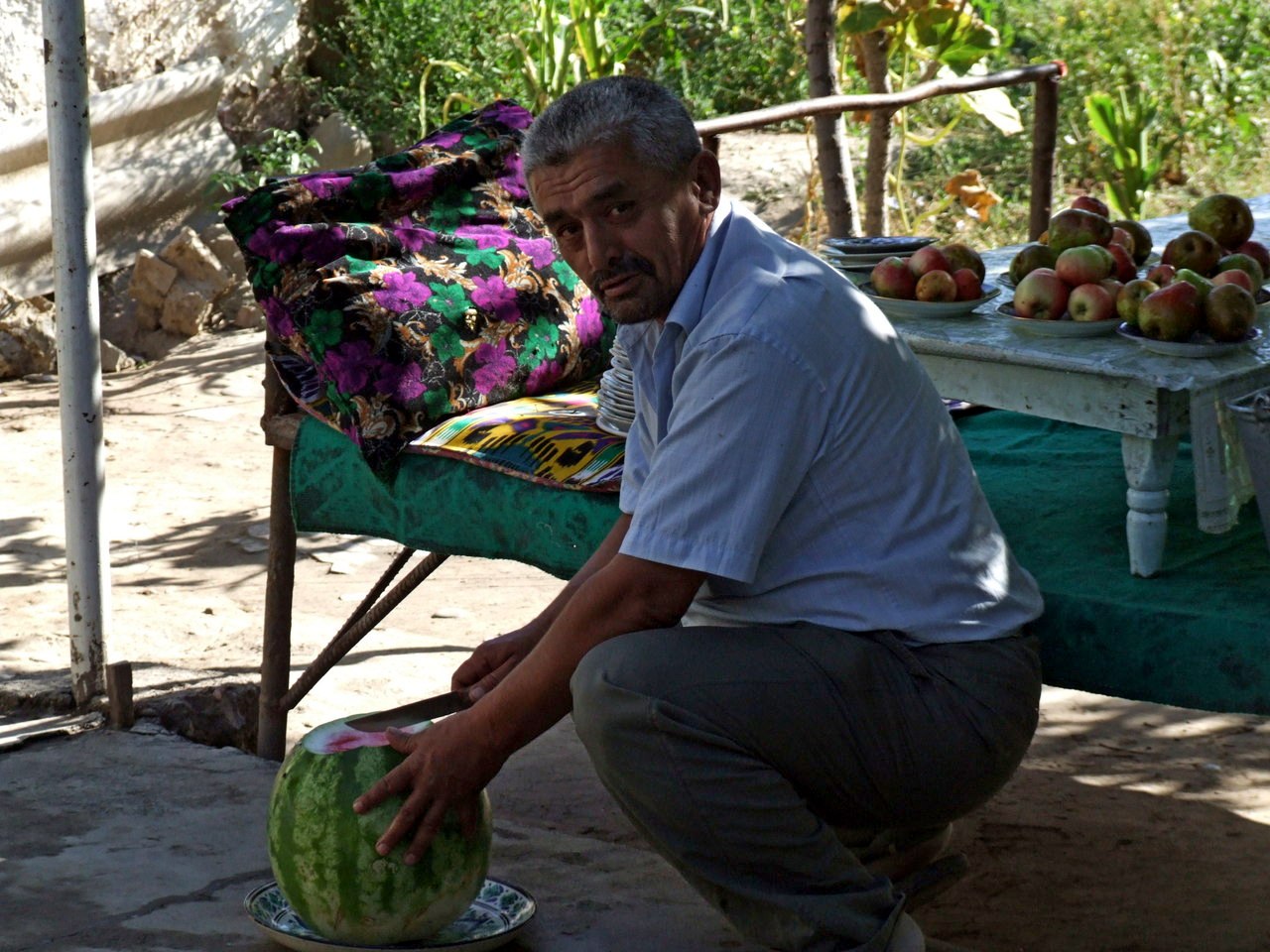 Утром в 8 часов он нас встретил и повел к себе. Общались… Фрукты ели… плов. Плов был настоящий 🙂