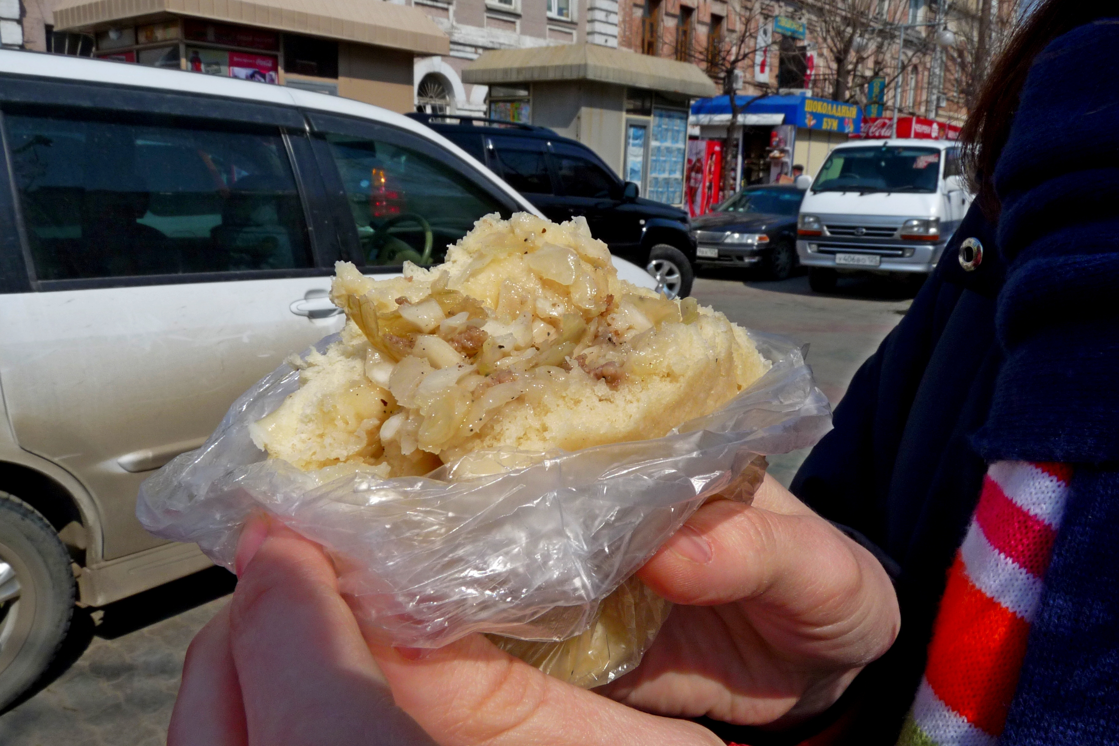 День начался поздненько — часа в 2 дня. Договорились с ребятами встретиться на Светланской улице — это еще одна центральная улица Владивостока, а вечером, в 18-30 — с Катей вместе сходить на маяк. Добрели до Светланской, вспомнили, что не завтракали — купили местного фастфуда. Здесь можно купить шикарную штуку: пян-се. Вареное мясо с вареной капустой внутри приготовленного на пару мешочка из теста. Вся радость — 28 рублей. Одной такой вполне наедаешься. Говорят, национальное китайское. Гораздо лучше, чем хот-доги с шаурмой жрать, ей богу.