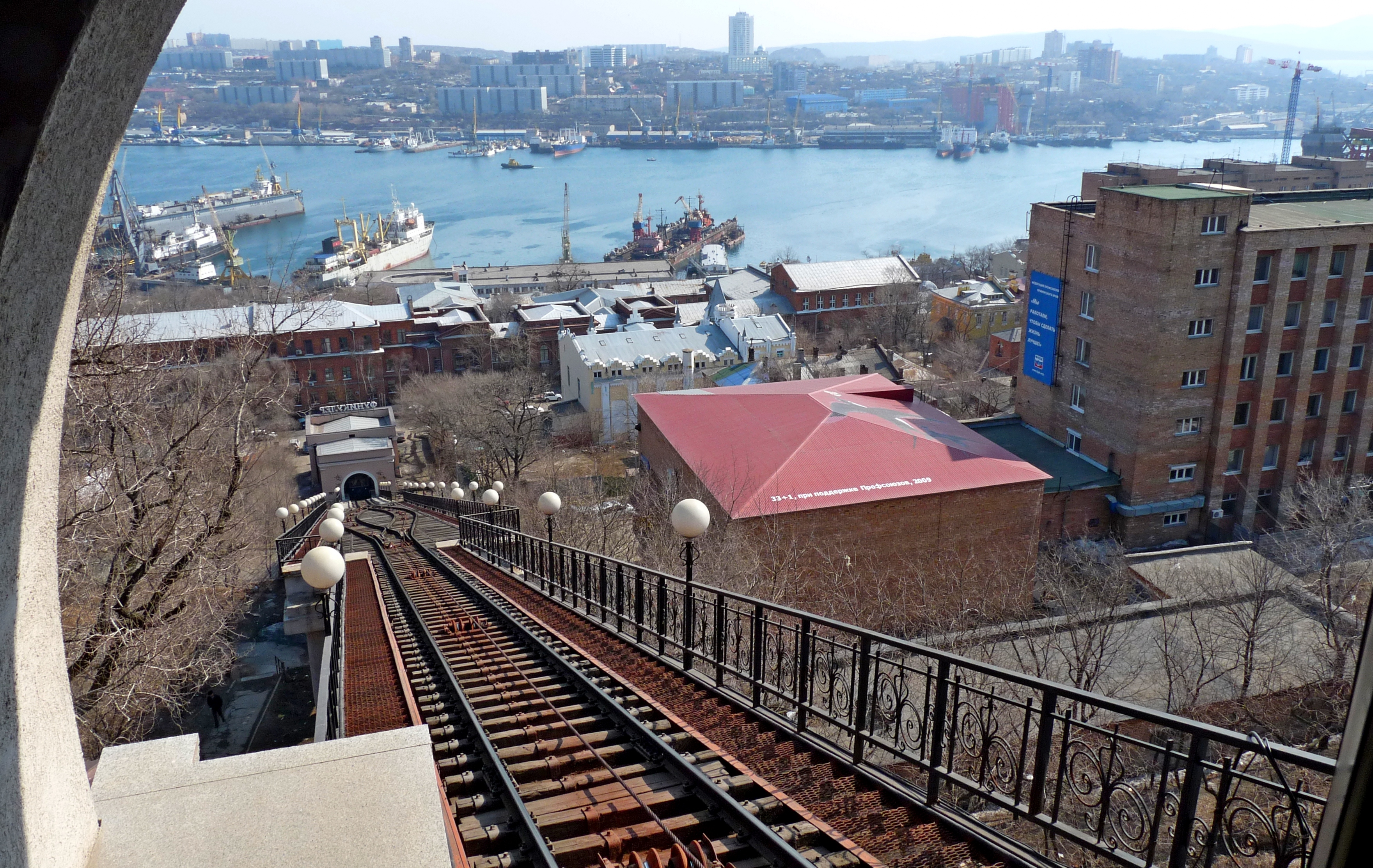 Впервые в жизни катался на фуникулере — такая шняга на рельсах, полу-лифт, полу-трамвай. Цена билета — 5 рублей.
