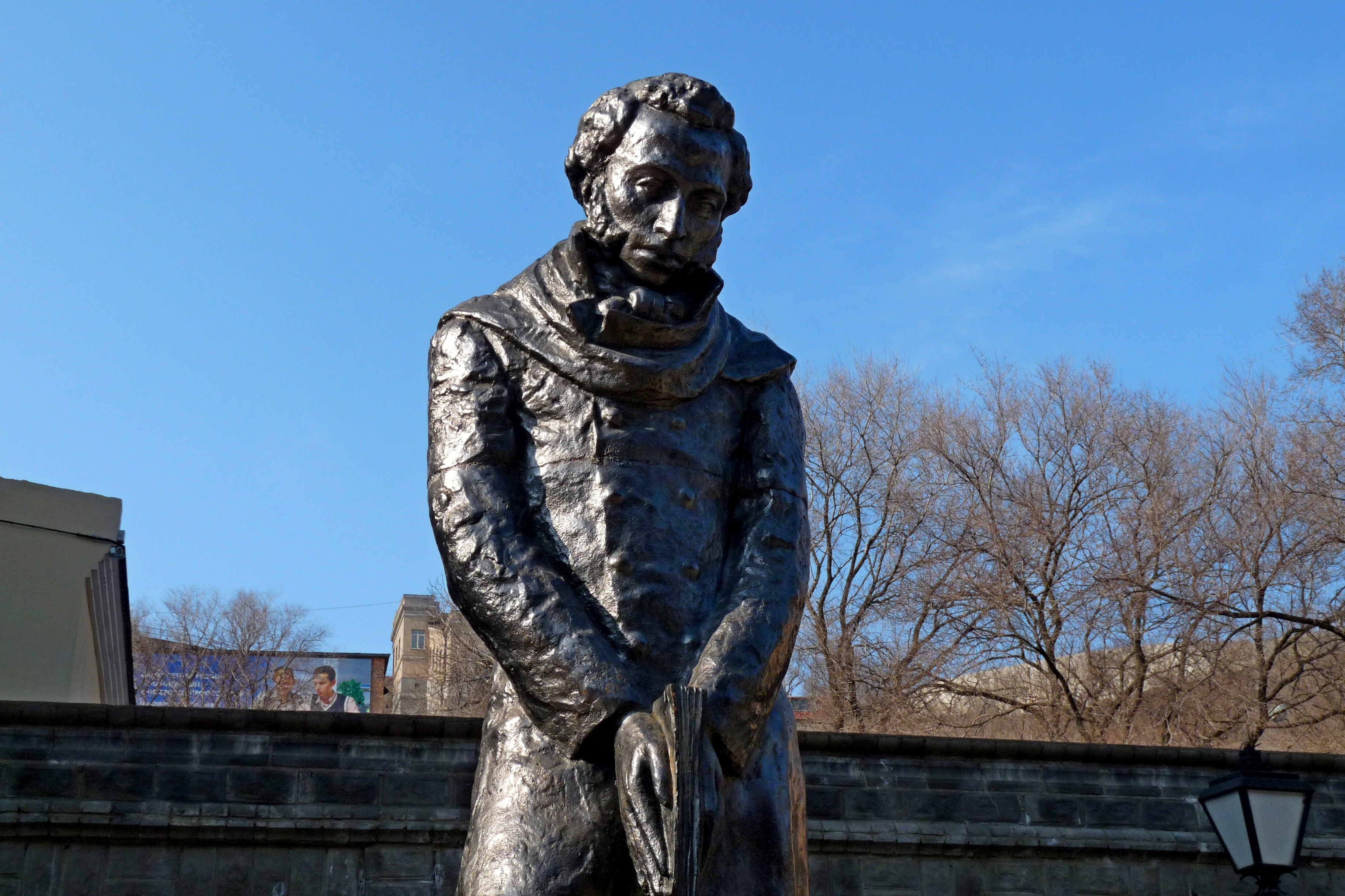 Спускаемся со смотровой и бредем по ул. Пушкина в сторону центра. Видим памятник Пушкину… Не совсем понятно, что же на самом деле хотел сказать автор 🙂