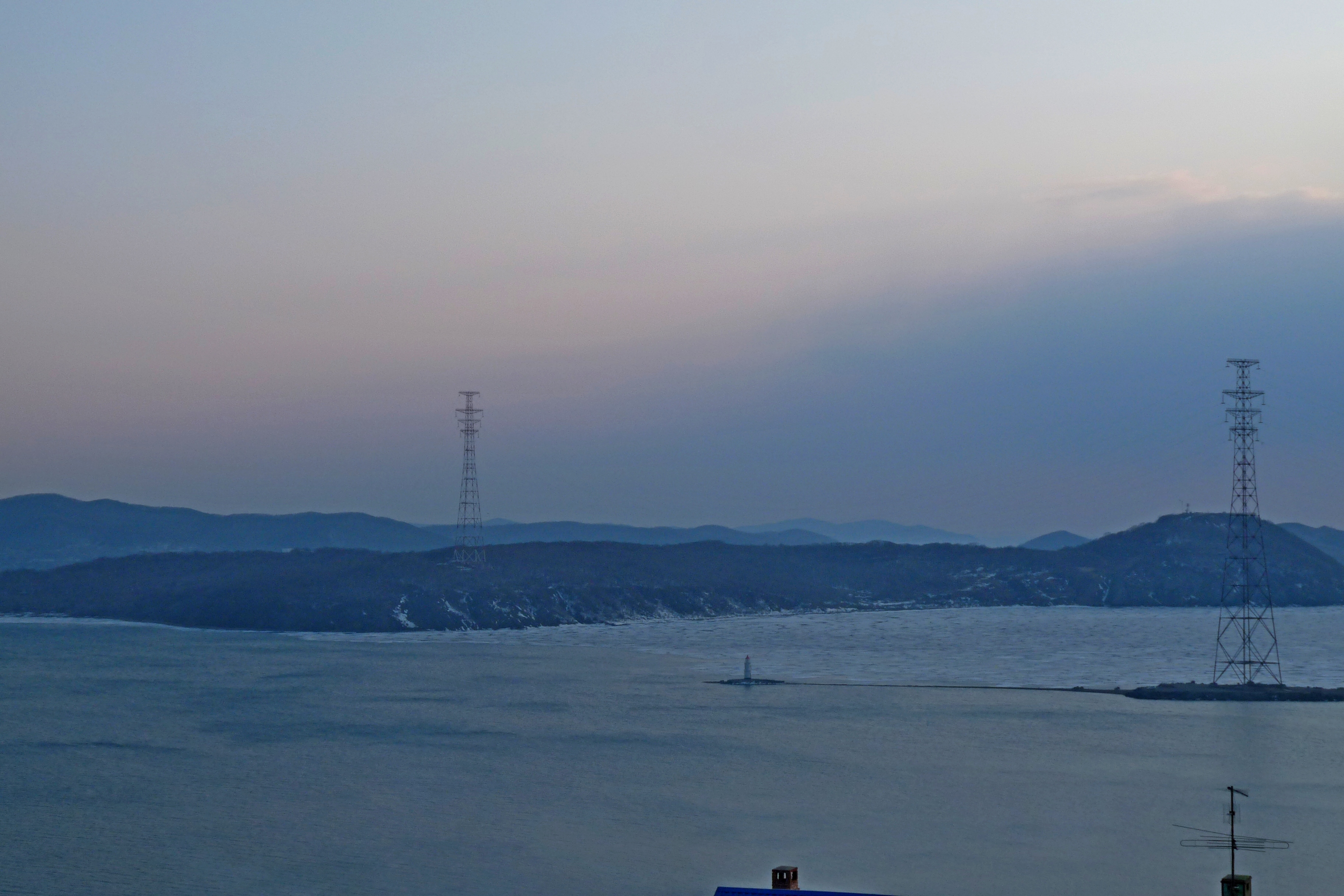 Остановка так и называется — Маяк. Поднимаемся на ближайшую сопку… Это что, маяк? Вот эта вот пижня посреди залива? Какое разочарование! Неужели и на мысе Горн такой же?