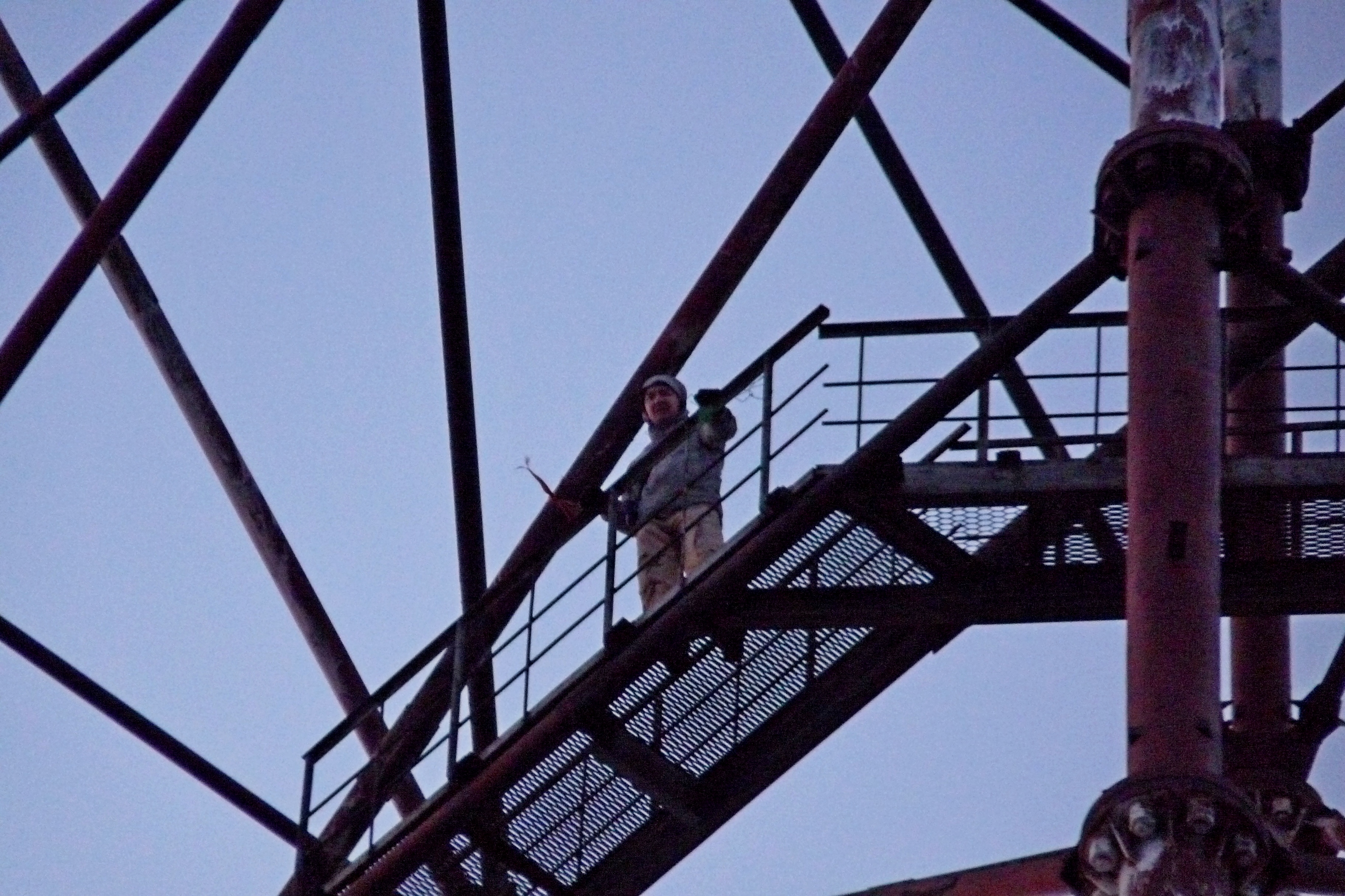 Когда добрались до опоры ЛЭП кое-кто возжелал на нее залезть.