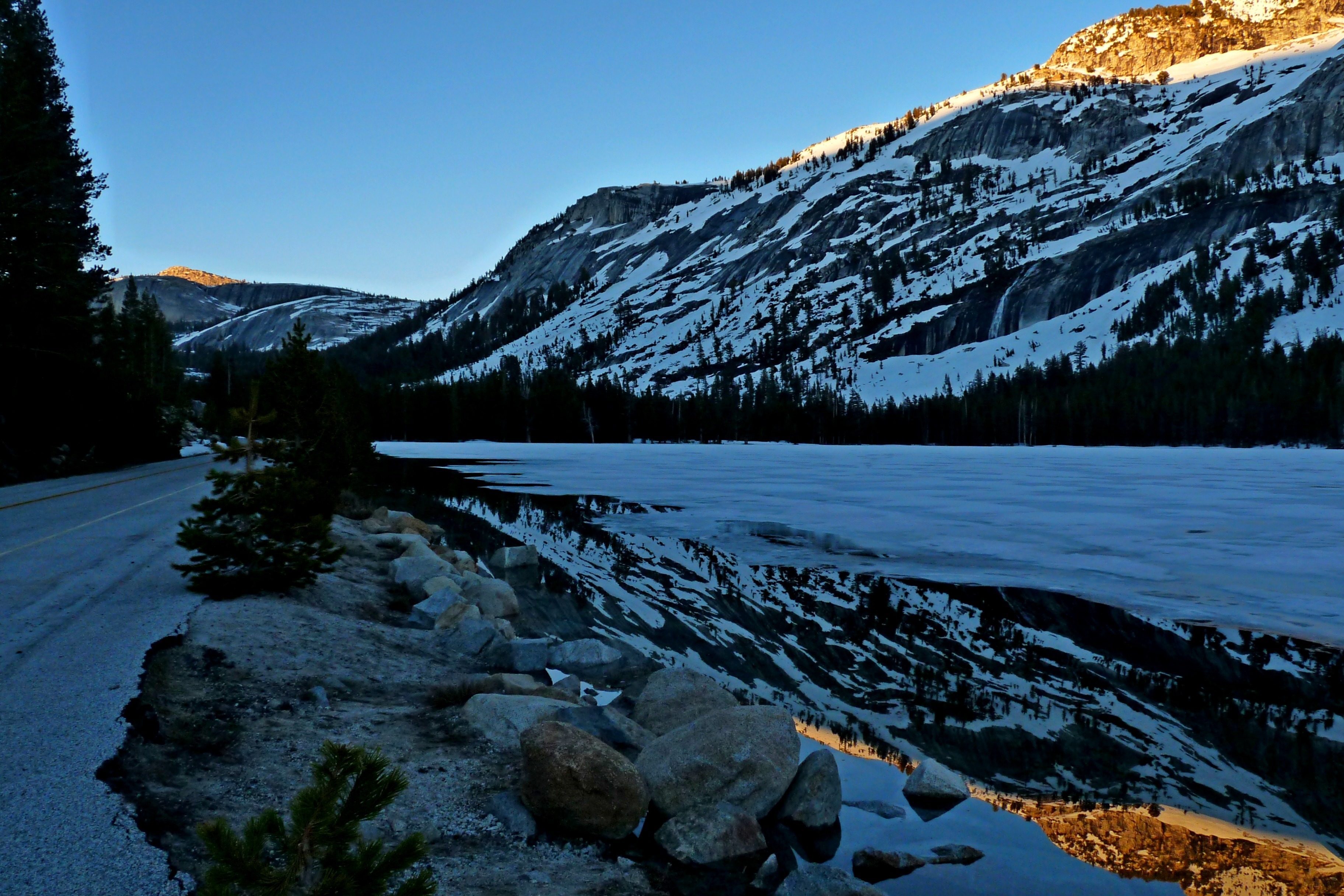 И еще пара кадров высокогорного озера Тенайя (Tenaya Lake), еще со льдом.