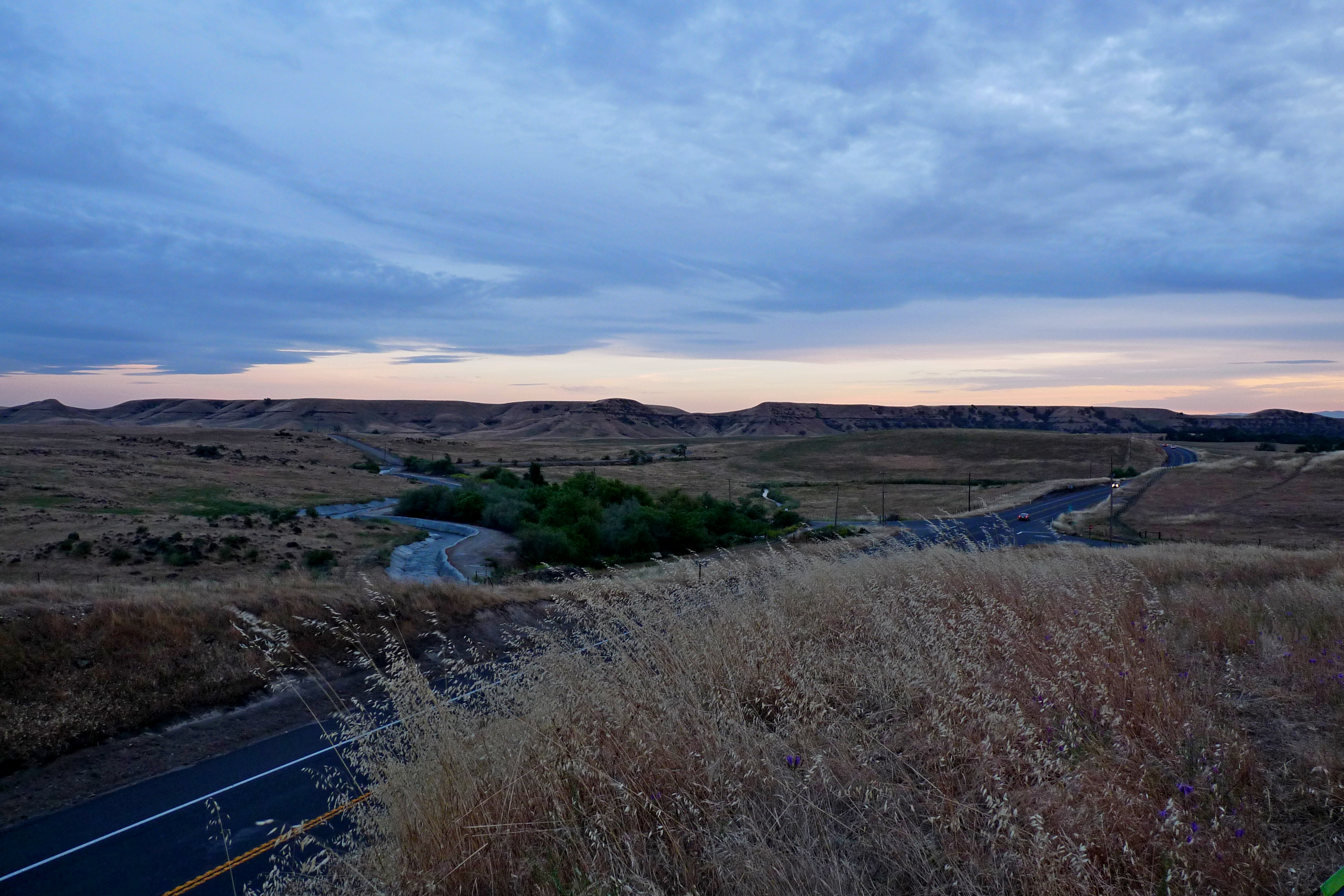 Еще одна ночевка в колючих кустах на холме над трассой. В США бывает трудно найти место под палатку — много заборов с надписью «частная собственность».
