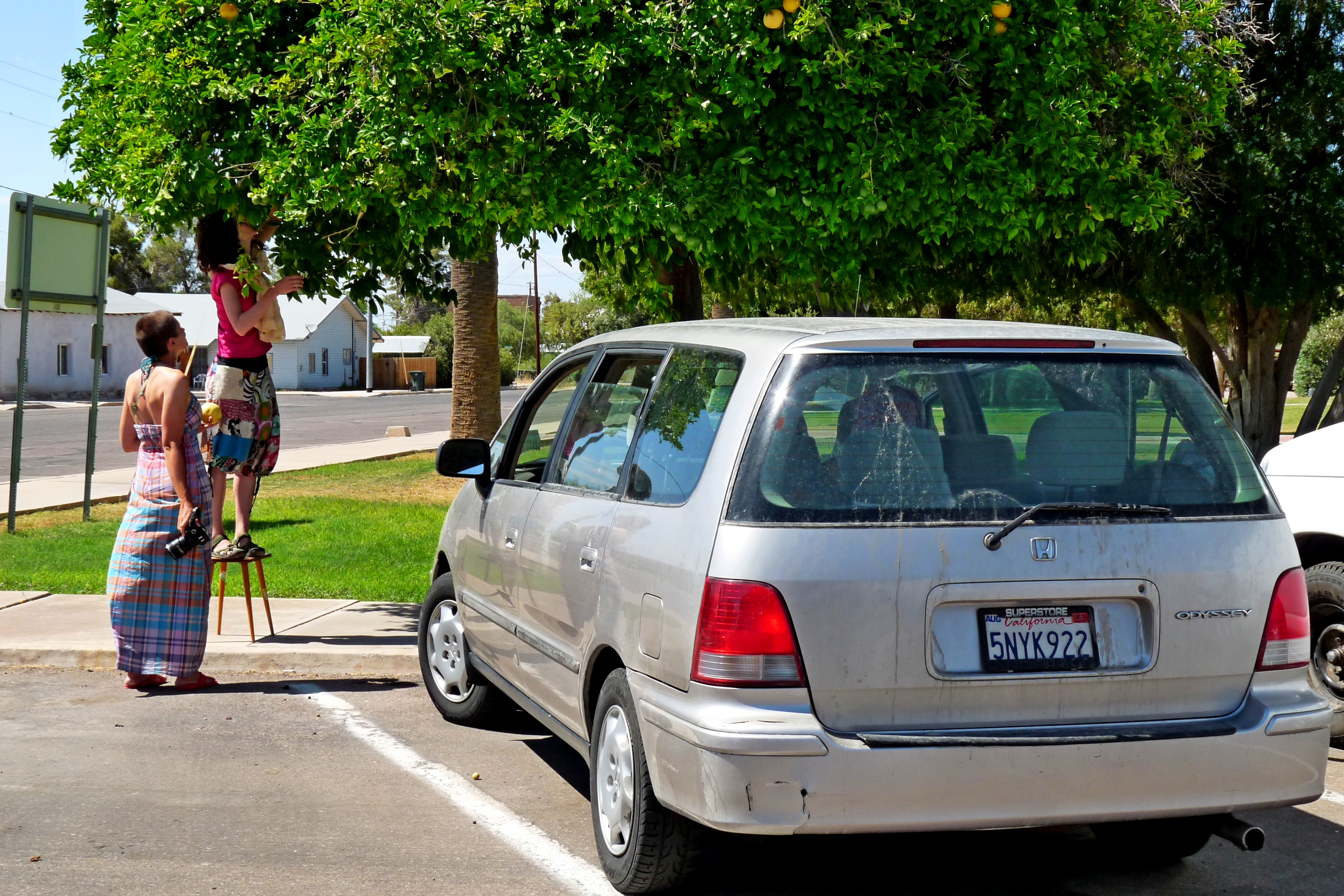 Еще одно эпичное полотно. Девчонки собирают цитрусовые (насколько я помню, это были апельсины) с деревьев перед зданием городской администрации какого-то маленького городка. Американцы не воспринимают эти плоды как что-то съедобное — они идут и покупают их в супермаркете. А мы — дикие, мы воспринимаем. Поэтому собирательством занимались.