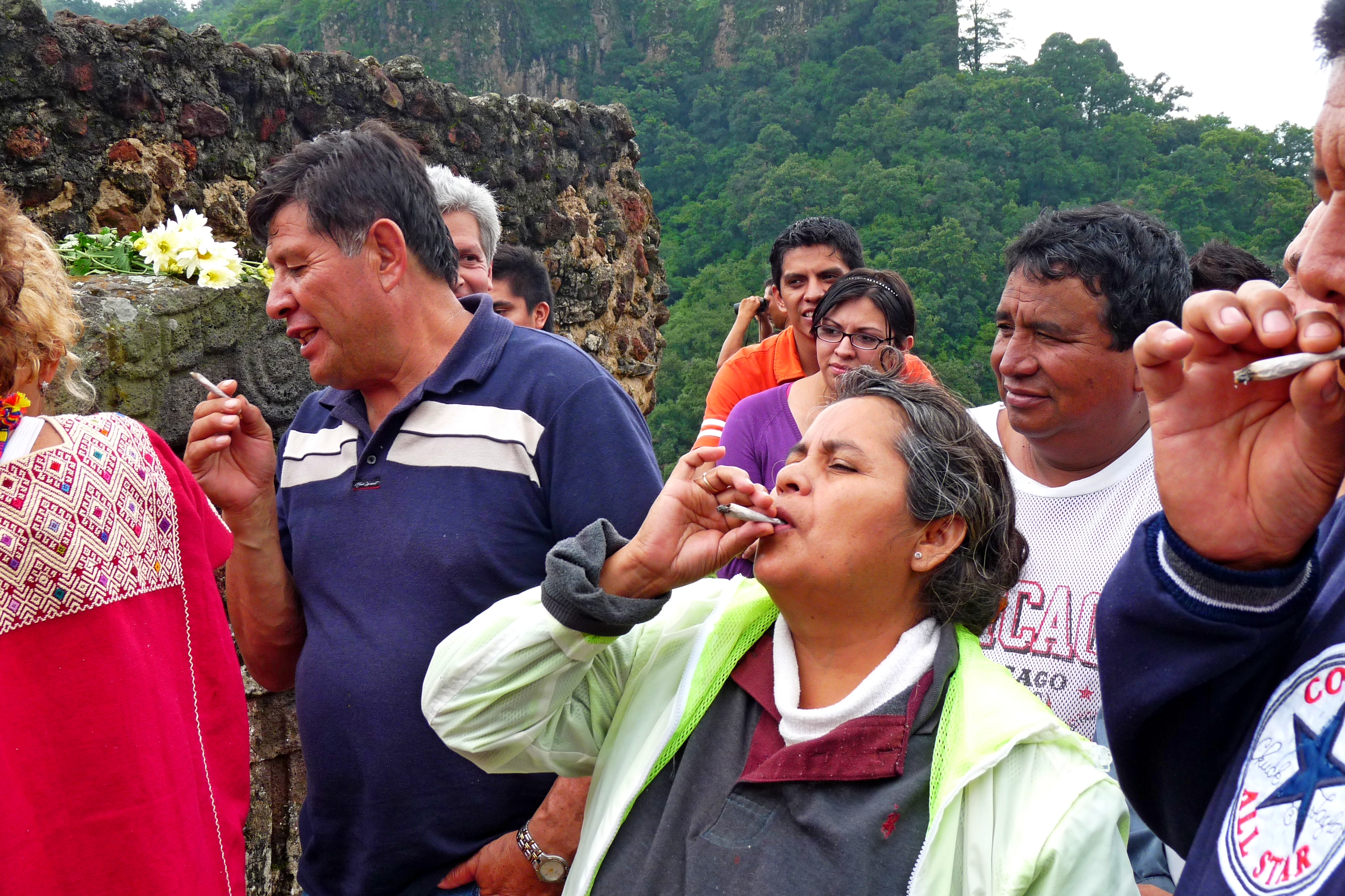 Поднявшись на вершину к пирамиде Тепозтлан, обнаружил там ДЕЙСТВО. Молодой парень индейской внешности и немолодая вполне себе белая женщина неистово камлали. Воссоединение с миром произошло вполне традиционным способом: все накурились.